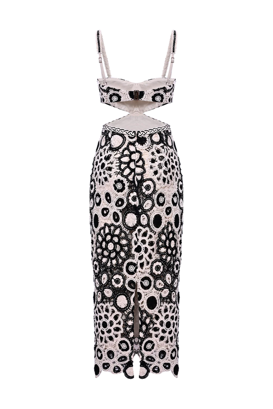 CORAL CROCHET CUTOUT MIDI DRESS