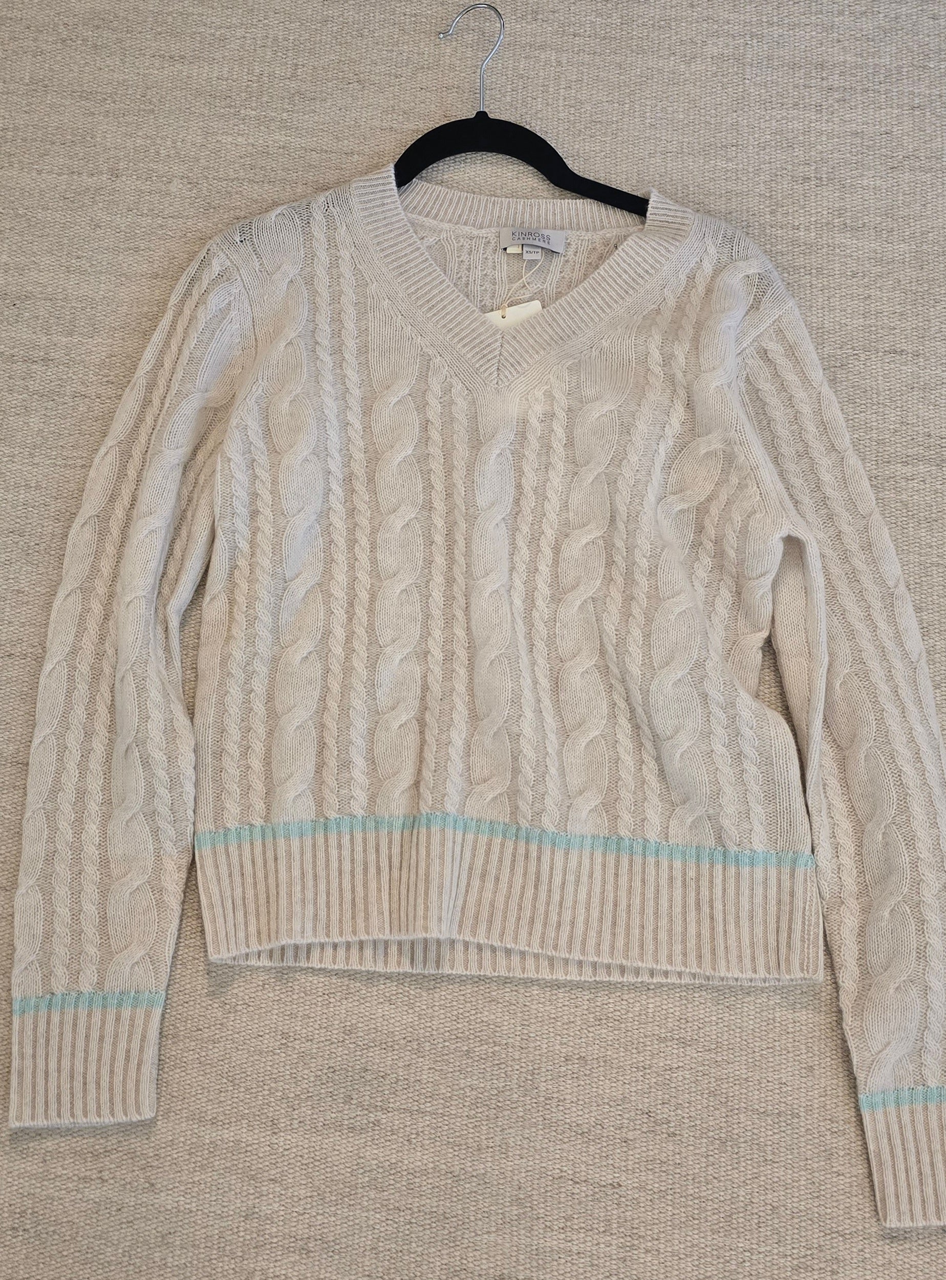 Elevate your essentials with this refined cashmere V-neck cable knit sweater. Crafted from premium cashmere, it delivers unparalleled softness and warmth while maintaining a sophisticated silhouette. The classic cable knit texture adds visual depth and timeless appeal, making it versatile enough for both professional settings and relaxed weekends. The V-neckline flatters various body types and pairs effortlessly with dress shirts or worn solo. Built to last, this investment piece resists pilling and maintains its shape season after season, embodying the quality standards discerning customers expect from luxury knitwear.