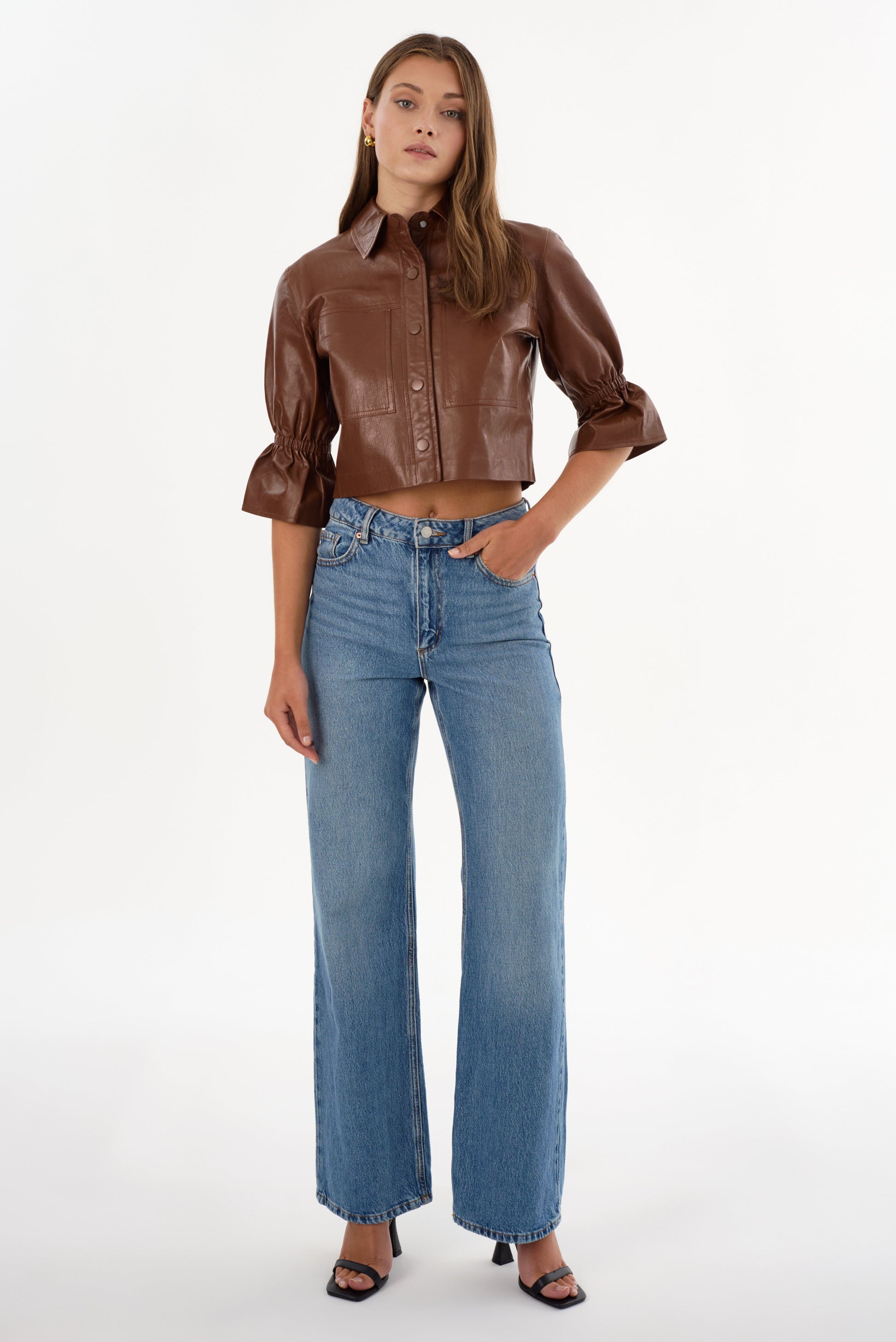 Carolina Cropped Ruffle-Sleeve Leather Jacket