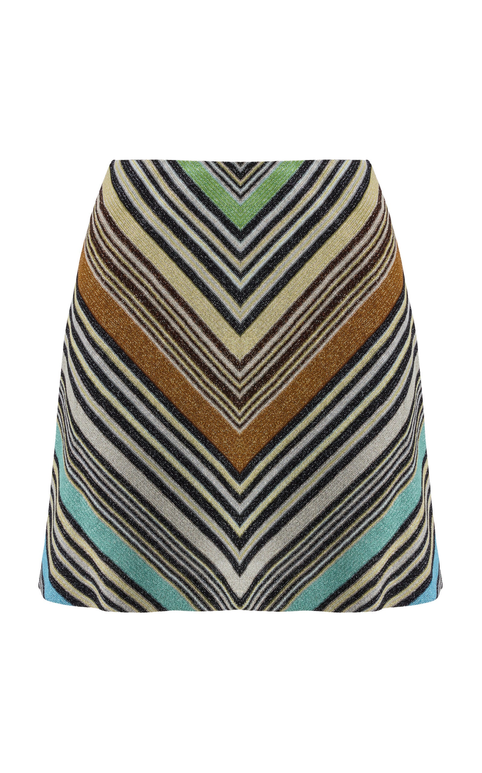 Effortless elegance meets modern sophistication in this Chevron Knit Mini Skirt. Crafted from a luxurious blend of 83% rayon and 17% metal fiber, the fabric drapes beautifully while offering a subtle shimmer that catches the light. The pull-on design ensures comfort without compromising style, making it perfect for spring transitions. Made in Italy with meticulous attention to detail. Dry clean to maintain its refined finish.