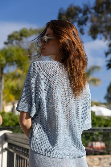 Discover the effortless style of our Crochet top. Made from lurex crochet in a fishnet design, this top is perfect for any occasion. With its one size fits all feature, it's a versatile addition to any wardrobe. Elevate your look with a touch of elegance.