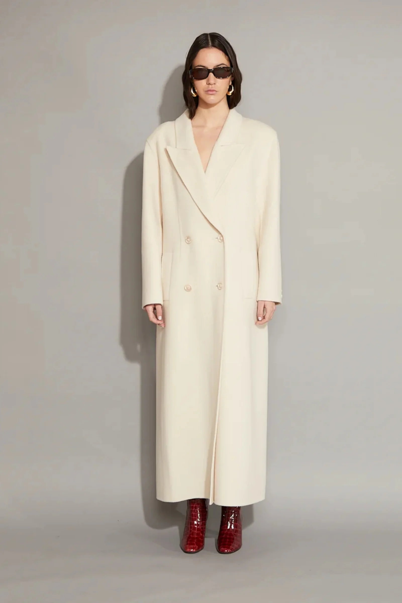 The LUCK COAT is a sophisticated long wool coat featuring a double-breasted design and a tailored collar that enhances its structured silhouette. Crafted for both warmth and elegance, this coat offers excellent insulation while maintaining a refined look, making it an ideal choice for cooler seasons and polished ensembles. Its classic tailoring ensures timeless style and versatile wearability.