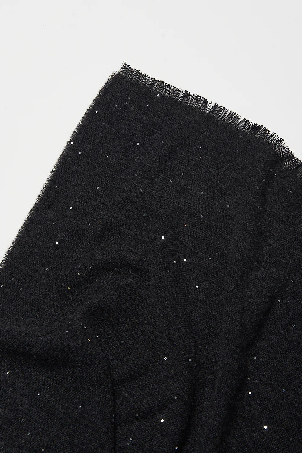 This sophisticated stole combines fine cotton and virgin wool-blend yarn with a jacquard knit detailed in sequins, creating a subtle shimmer. Its soft, enveloping texture offers both comfort and versatility, making it an ideal accessory to enhance casual ensembles or complement refined, contemporary styles. Crafted to elevate your wardrobe with understated elegance.